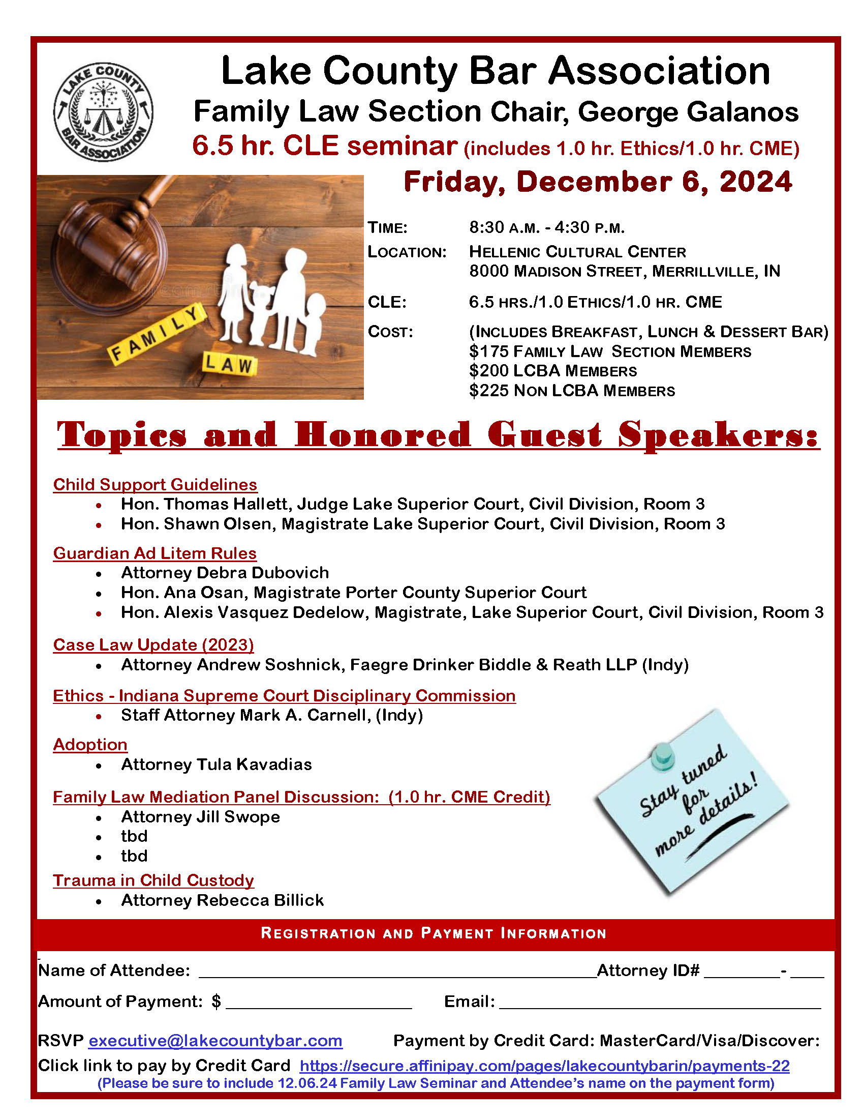 Please use the payment link below to register for this event. (*Include your name and DATE of CLE on the Payment Form – RSVP to: executive@lakecountybar.com